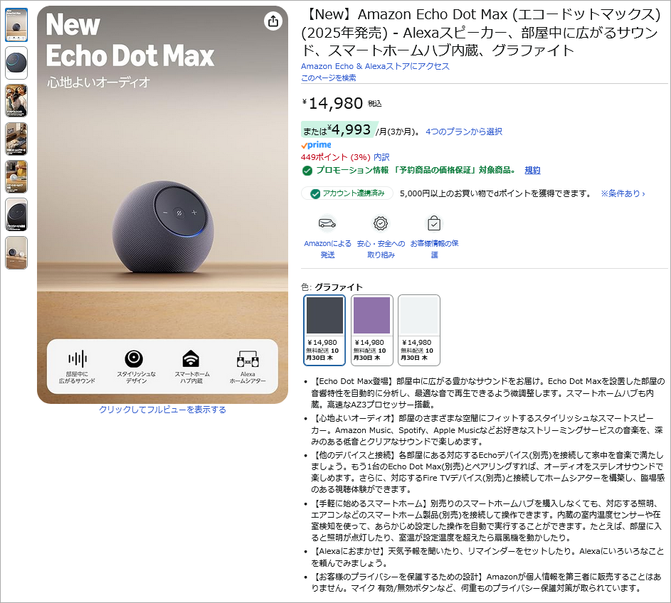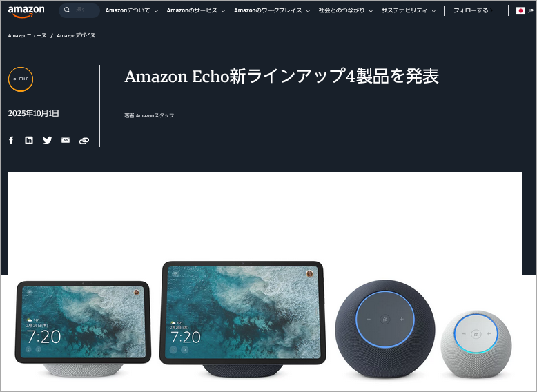今回発表したEchoラインナップは、生成AI技術による新たなAIアシスタント「Alexa+」(アレクサプラス)にも対応できるよう設計されています。Alexa+がお客様のお住まいの国で利用可能になった際には、より最適化された形でAI体験をお届けする予定です。