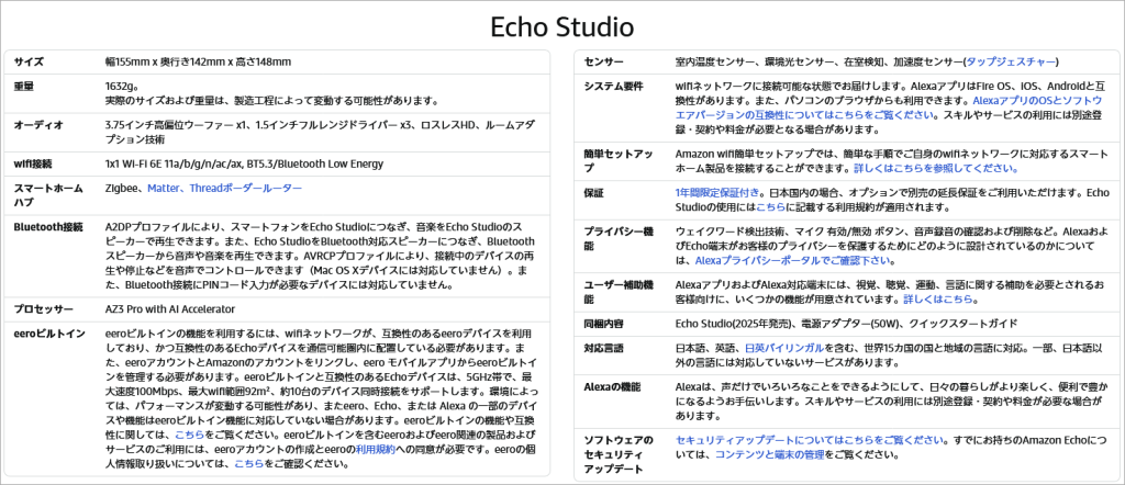 生成AIであるAlexa+対応ということで、特に液晶モデルに注力されているように見えますが、音質追求モデルのEcho Studioまでアップデートされたのには驚きです!!