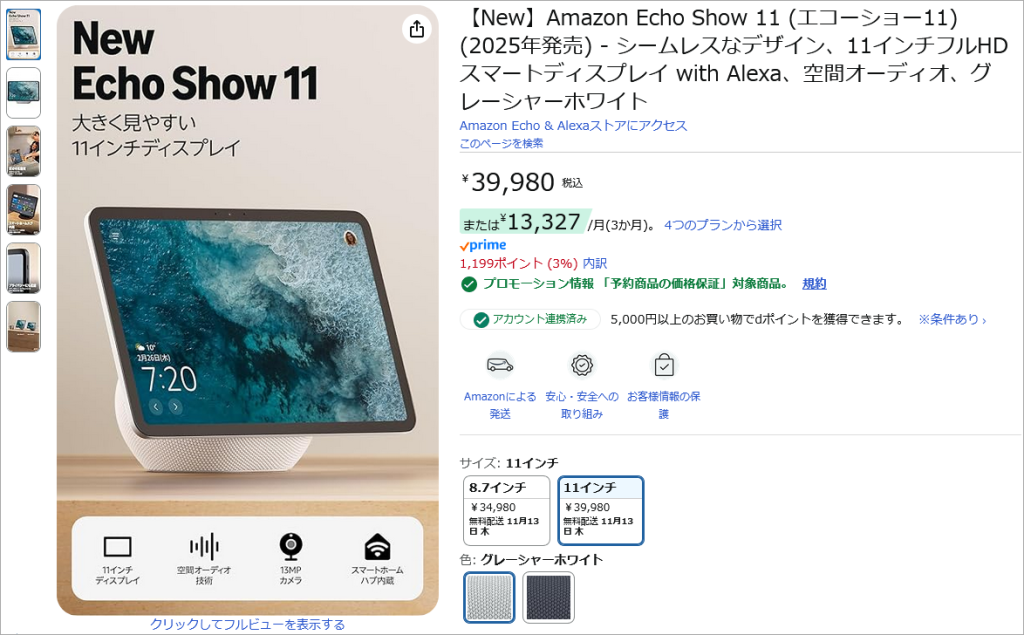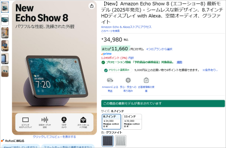 価格は・・・先のEcho Show8(2025)の34,980円に対して39,980円です!!