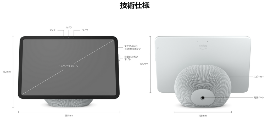 Echo Show10の様に回る?とも思ったのですが、残念ながら固定のようです。