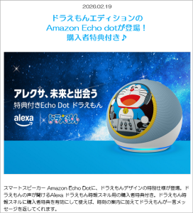どうせならドラえもんと会話できれば・・・って、いつの日かAlexa+が実現してくれることと思います。