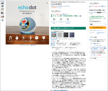 ・・・で、この製品はあくまでも(ドラえもん付の)スタンドだったわけですが、今回はドラえもん仕様のAmazon Echo本体が発売されましたので紹介させていただきます!!